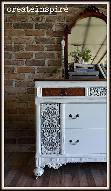 My client actually emailed me saying she had been following me for a while (love that, too) and wondered if I had any 3 drawer dressers for sale. I just happened to have this pretty thing waiting in the wings and it was a perfect fit.