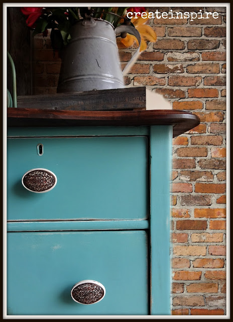The first time I painted it I did all the detail a different color than the body and it was just too much. I didn't like it and ended up painting over it (sometimes the reality of a vision just doesn't work out). Then. I was afraid it was too simple, but I love how the simplicity lets the design of the drawer fronts stand out.