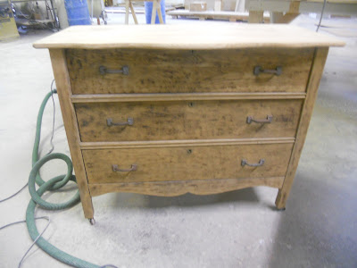 Are you ready for a sad story? I saw this online and loved it (it has a mirror that goes with it). The lady who was selling it said she had stripped it which is why I assumed it looked the way it did. That was fine-less work for me, right? So, I had Craig pick it up for me. It was late when he got home, so we put it in the garage and I didn't look too closely at it. The next day we took it to his shop and I realized, in the light of day, how rough it was. I mean it was REALLY rough! I thought surely stripping it wouldn't do that to it. After working on it for a few days I realized they had stripped it by sand blasting it!! I usually don't give advice because I stink at it, but here's some advice--DON"T STRIP AN ANTIQUE BY SAND BLASTING IT!!! please :)