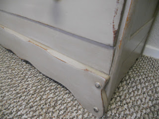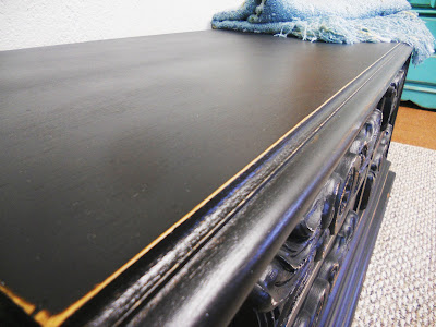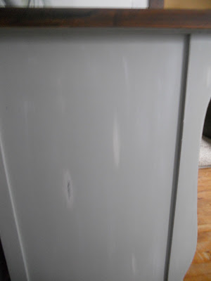 A family member, who loves to give me a hard time, brought this to my house a few weeks ago and said, "I thought you might like this. You can have it." Needless to say, I forgave him of all his merciless teasing on the spot! ;) I LOVE it! It's curvy but a little bulky which gives it a masculine feel. The top was pretty rough, so I knew it would need to be redone--darn it! ;)