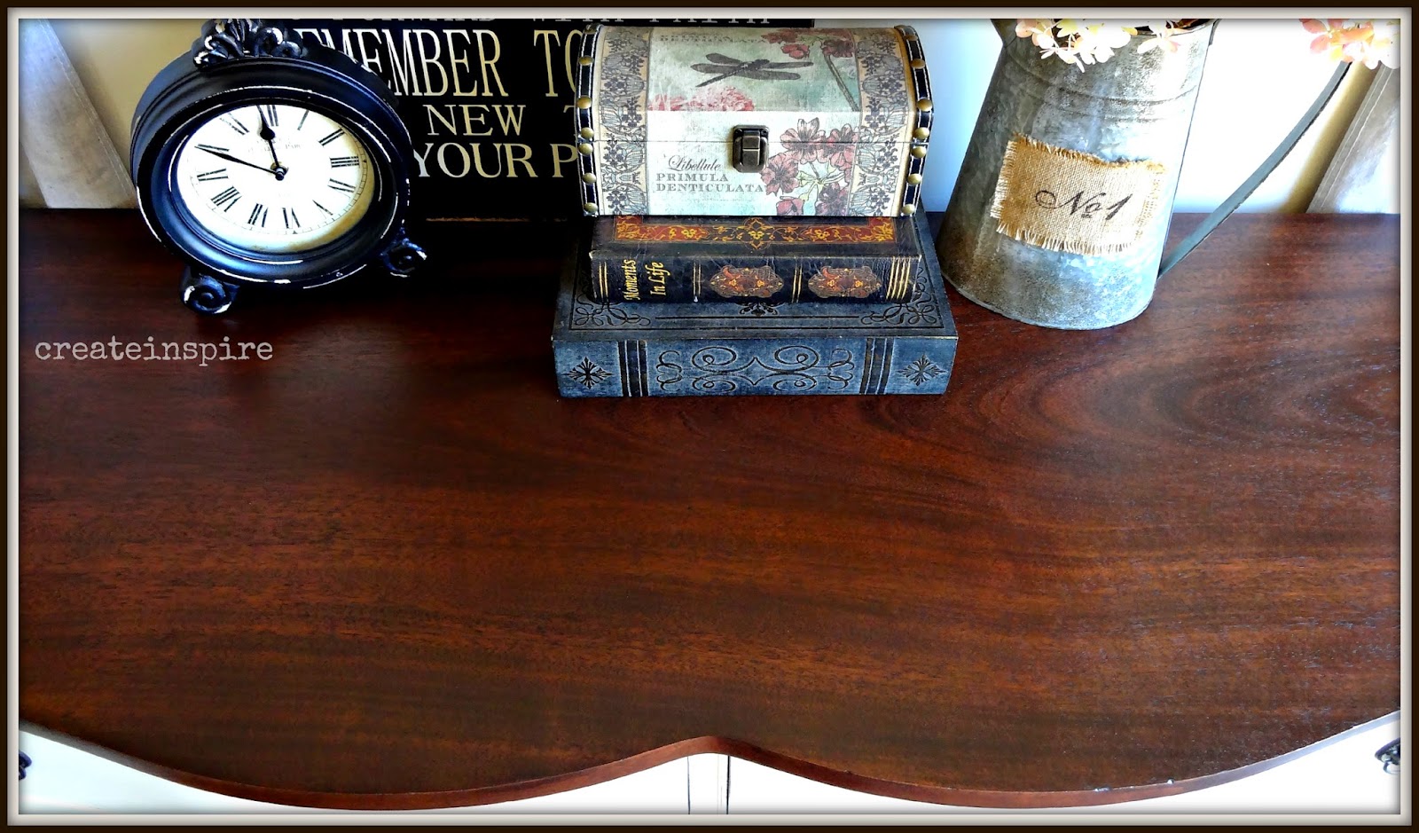 It was in pretty rough shape. Lots of dents and dings. At one point my client had painted the top black and wasn't happy with it. She decided she wanted it refinished dark and I thought that was a great choice. ;)