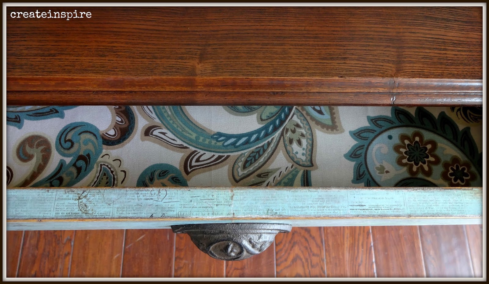Who in the world would put that putrescent color over cherry?? And, as if the color wasn't bad enough I can barely bring myself to look at the hardware. Almost like Medusa's head. Yep, it's that bad. Now, I've said this before and have had people say. "I like that hardware!" I just say to each his own because it is certainly not my cup of tea.