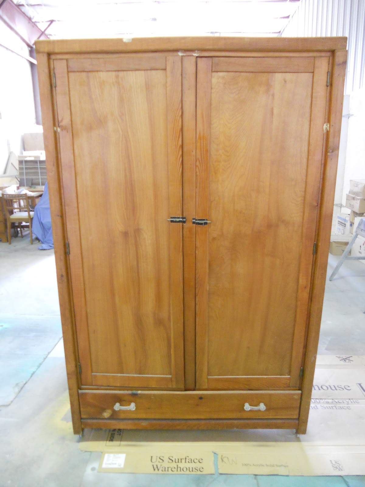 The armoire is awaiting knobs and baskets for the inside because it's being repurposed as a craft cabinet!