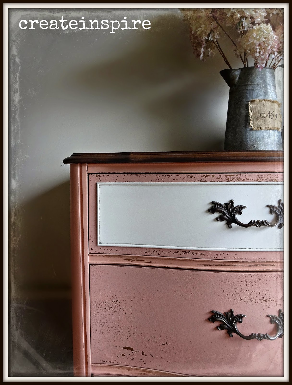 I knew right away what I wanted to do with this one. I don't do really girly very often and I rarely do any shade of pink, but Sausha from Sweet Pickins recently came out with a new color in her milk paint line. It's called Coral Bells and it was just speaking to me from her page. :) Love, love, love it.